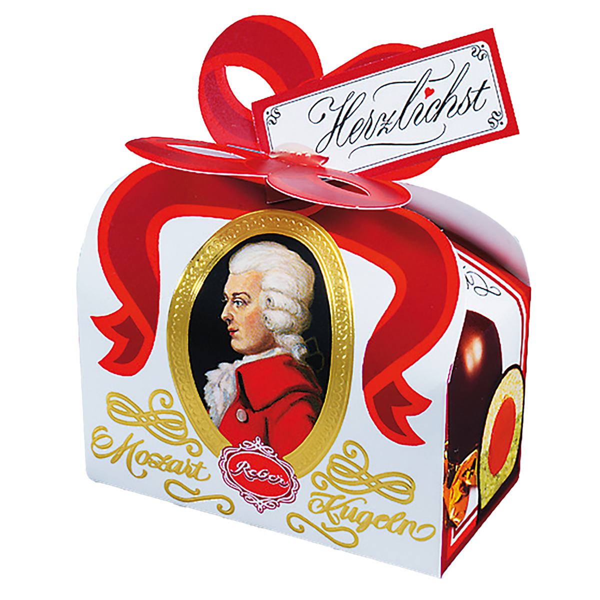 Boules Mozart® Reber, fourrées d’une pâte d’amandes raffinée saveur pistache, réalisée à partir de pistaches vertes fraîches, d’amandes et de praliné noisette, et enrobées de délicieux chocolat praliné.